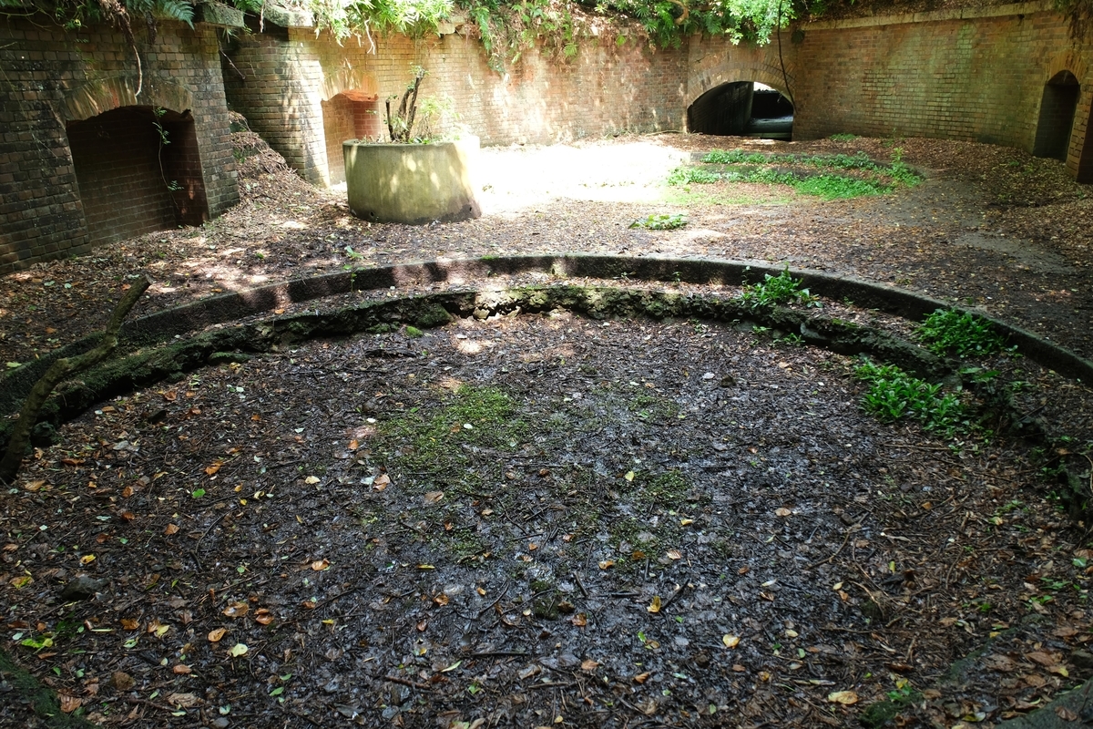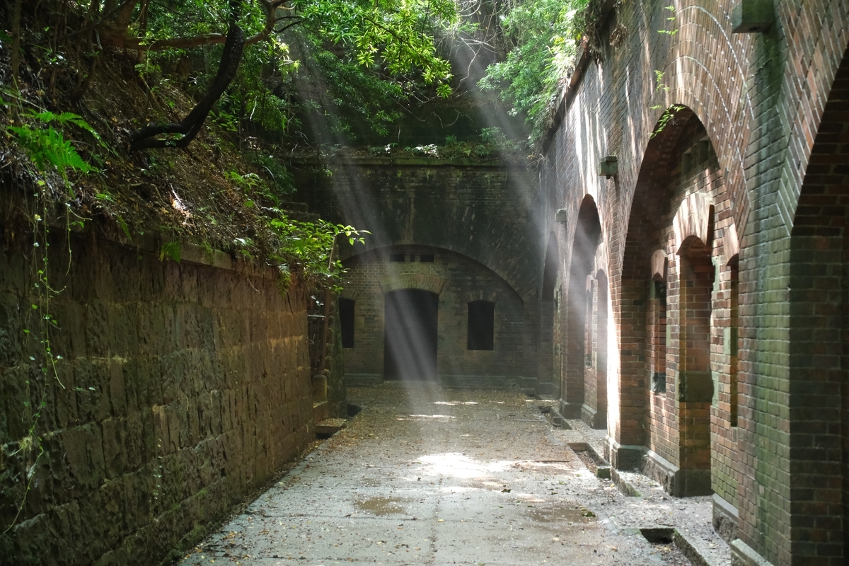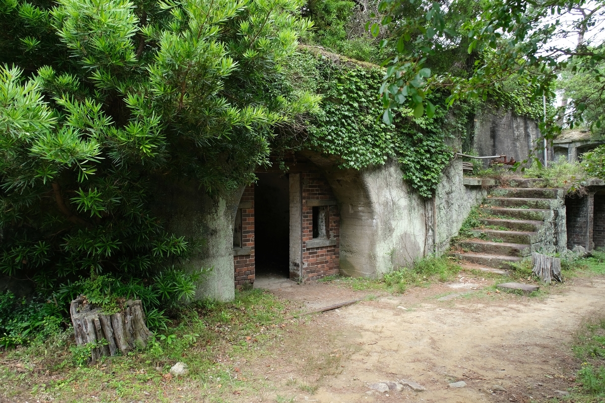 将校宿舎跡の左側に別の建物がある様なので進むと、なんか奥にトンネルみたいなものが見えてくる。
