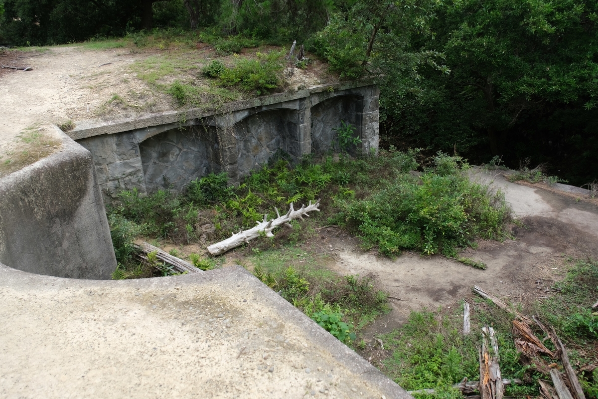 横須賀の千代ヶ崎砲台などの、類似の施設でも何度も見た気がするこういう形の切り通し的な構造。ここを越えると将校宿舎跡だ。