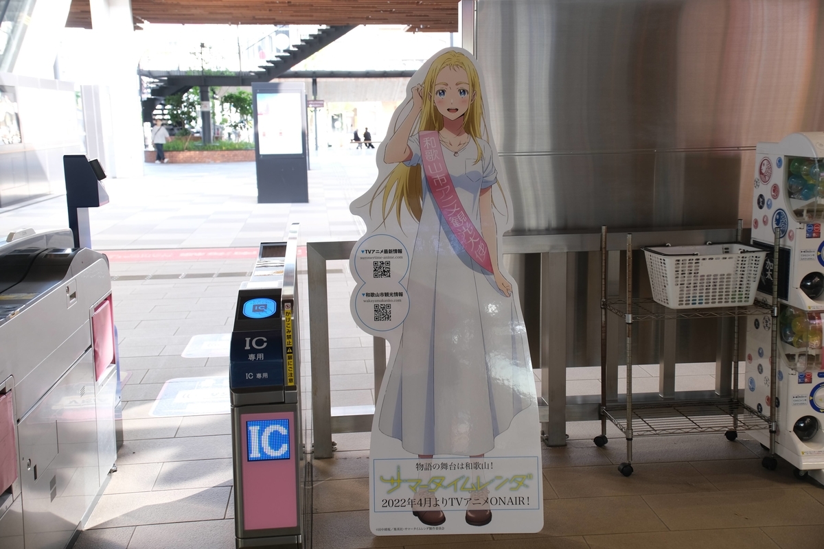 ちなみに、南海和歌山市駅の改札のところにも潮さん立ってた。他にも和歌山城とか色々なところにいらっしゃるようだが、今回確認できたのは友ヶ島桟橋のところと、この和歌山市駅(2箇所)の合計3箇所のみ。