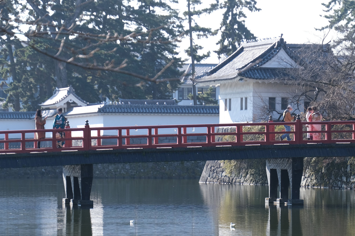 ちなみにこれを撮影したのは成人の日だったので、すぐそばで成人式をやっていたため、記念写真を撮る新成人たちが写り込んでいるのは申し訳ない。背景の建物は二の丸隅櫓。