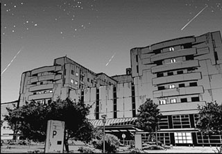 再び回想シーン。しし座流星群なので11月17日である。現在は、かつての城内小学校の校舎入り口左右に立っていた杉の木が残っている。