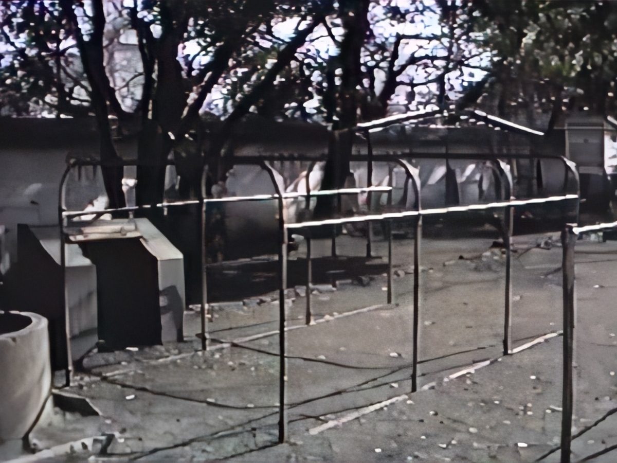 また、古い写真では構造がよくわからなかった校門のところの扉のようなもの、これを見ると普通の校門にもよくある、横滑り型の扉であることがわかる。