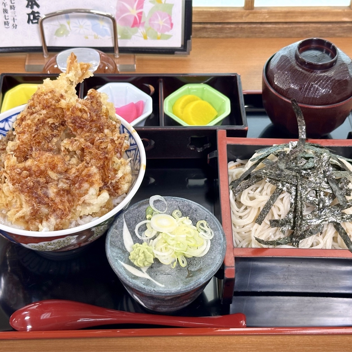 2日目の夕食は、オーロラ撮影のためのカメラを18:30頃に設置に行くのだが、標津で日曜夕方に開いているお店は19時台で終わってしまう店がほとんどのようなので、17時台に「そば処 福住 総本店」に行ってきた。ホタテと海老の天丼と蕎麦のセットを頼んだ。天丼も美味しかったし、蕎麦は更級系な感じのつるっつるの蕎麦だった。